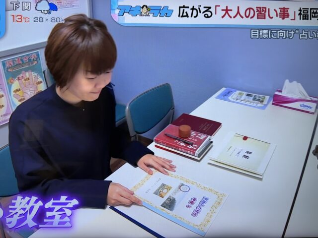 FBS福岡放送の「バリはやッ」2026年3月2日放送で福岡占いの館「宝琉館」の占いスクールが紹介されました。大人の習い事として占いの鑑定を受けるだけでなく、鑑定を行う側として学びをしたいという人が増えていることが紹介されました。実際、占いを学びたい人は年々、増えています。関心のある方は福岡占いの館「宝琉館」にお問い合わせ下さい(電話092-771-8867)