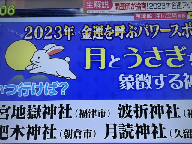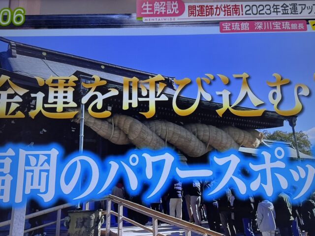 福岡県、佐賀県で1月16日(水)午後7時からRKBテレビ(TBS系)地上波4チャンネルの「ぞっこん九州」で福岡占いの館「宝琉館」が紹介されました。家族でゆっくり、のんびり過ごす年末年始を実現させるために人一倍「汗」をかいている業界の一つとして福岡の占い業界として紹介されました。