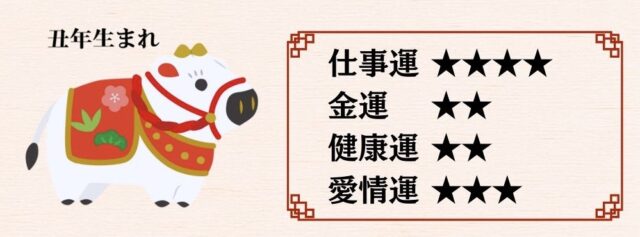 ※うし年(丑年)生まれの2026年(令和8年)の運勢については、あくまで生まれた年の干支のみを鑑定しての予測となります。同じ年に生まれた人は数百万人前後います。