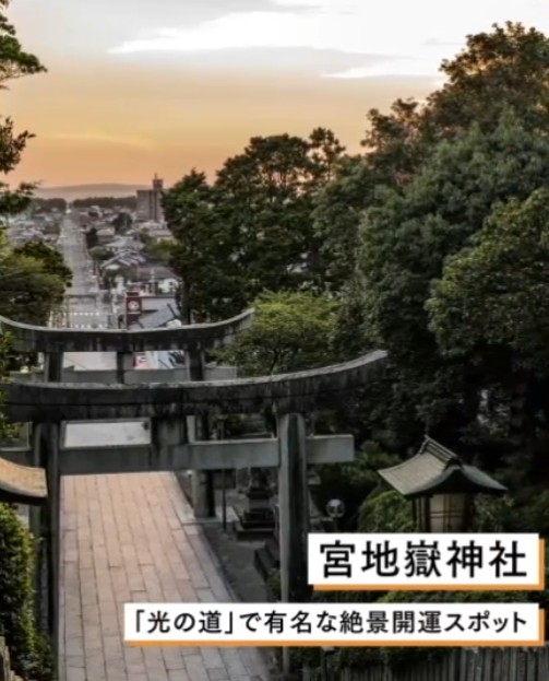 全国に鎮座する宮地嶽神社の総本宮。約1700年の歴史を誇り、金成の神、開運、商売繁昌のご利益で名高い。参道の延長線上に夕日の沈む期間が、年に二期(2月下旬および10月下旬)あり、「光の道」として知られる。