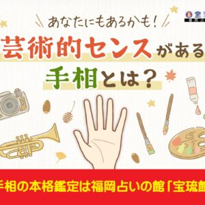 おそらく、幼少期、少年少女期あたりから手相をしっかり見ていくと、親としては、どんな才能を伸ばしてあげれば良いか、参考になります。関心がある方は手相占いの専門である福岡占いの館「宝琉館」にご来館下さい。