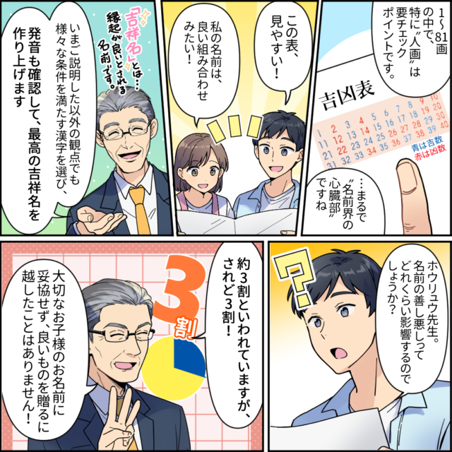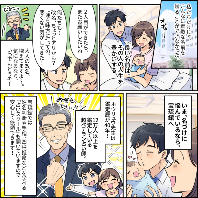 赤ちゃんの名づけについては、姓名学の専門家にしっかりと相談して最終的には親が決めるのが良いでしょう。