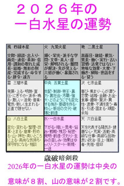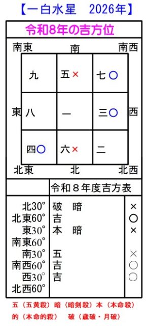 【今年(2026年=令和8年)の一白水星の吉方と凶方】