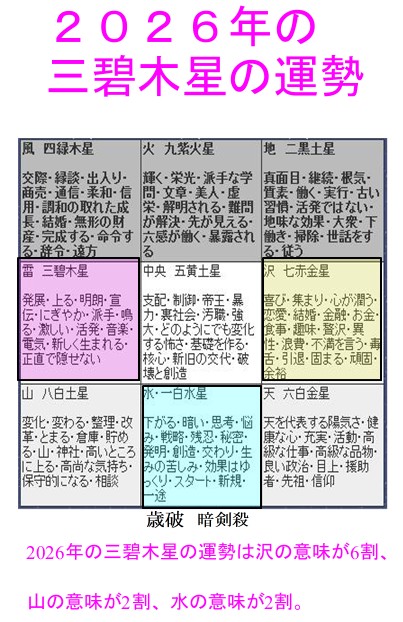 第3回目は三碧木星の人の2026年(令和8年)の運勢です。