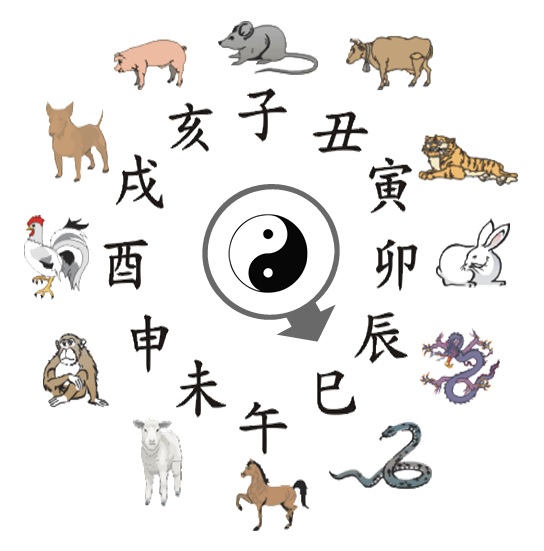 十二支はネズミ、ウシ、トラ、ウサギ、タツ(ドラゴン)、ヘビ、ウマ、ヒツジ、サル、トリ、イヌ、イノシシという12の動物(架空の動物も含める)で出来ています。