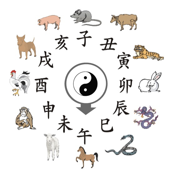 十二支はネズミ、ウシ、トラ、ウサギ、タツ(ドラゴン)、ヘビ、ウマ、ヒツジ、サル、トリ、イヌ、イノシシという12の動物(架空の動物も含める)で出来ています。