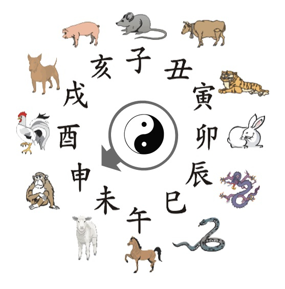 十二支はネズミ、ウシ、トラ、ウサギ、タツ(ドラゴン)、ヘビ、ウマ、ヒツジ、サル、トリ、イヌ、イノシシという12の動物(架空の動物も含める)で出来ています。