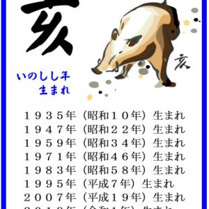 ねずみ年(子年)生まれ 、うし年(丑年)生まれ 、とら年(寅年)生まれ 、うさぎ年(卯年)生まれ 、たつ年(辰年)生まれ 、へび年(巳年)生まれ 、うま年(午年)生まれ 、ひつじ年(未年)生まれ 、さる年(申年)生まれ 、とり年(酉年)生まれ 、いぬ年(戌年)生まれ 、いのしし年(亥年) 生まれをそれぞれ、詳細に見ていきます。