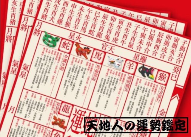 本場中国式の運命学で生まれ年の干支(えと)から金運、仕事運、恋愛結婚運、健康運、総合運を見ていきます。