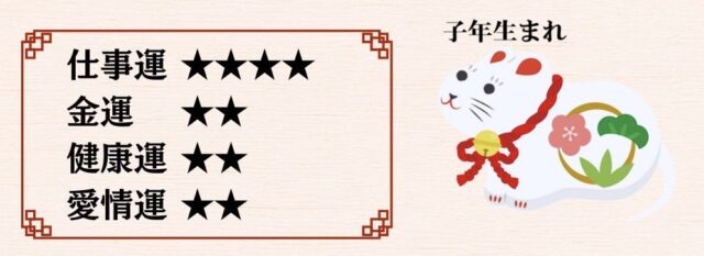今回はねずみ年(子年)生まれ 、うし年(丑年)生まれ 、とら年(寅年)生まれ 、うさぎ年(卯年)生まれ 、たつ年(辰年)生まれ 、へび年(巳年)生まれ 、うま年(午年)生まれ 、ひつじ年(未年)生まれ 、さる年(申年)生まれ 、とり年(酉年)生まれ 、いぬ年(戌年)生まれ 、いのしし年(亥年) 生まれをそれぞれ、詳細に見ていきます。