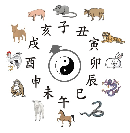 十二支はネズミ、ウシ、トラ、ウサギ、タツ(ドラゴン)、ヘビ、ウマ、ヒツジ、サル、トリ、イヌ、イノシシという12の動物(架空の動物も含める)で出来ています。