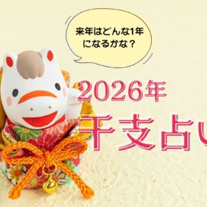 今回は2026年の運勢をねずみ年(子年)生まれ 、うし年(丑年)生まれ 、とら年(寅年)生まれ 、うさぎ年(卯年)生まれ 、たつ年(辰年)生まれ 、へび年(巳年)生まれ 、うま年(午年)生まれ 、ひつじ年(未年)生まれ 、さる年(申年)生まれ 、とり年(酉年)生まれ 、いぬ年(戌年)生まれ 、いのしし年(亥年) 生まれでそれぞれ、詳細に見ていきました。
