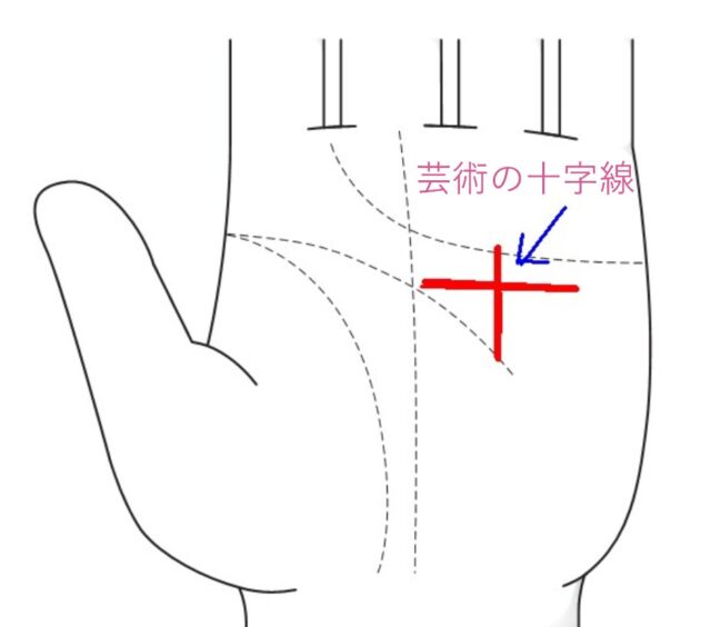 手のひら中央に十字になる線が出て、直感やインスピレーションに優れるタイプも芸術分野で活躍しやすい。