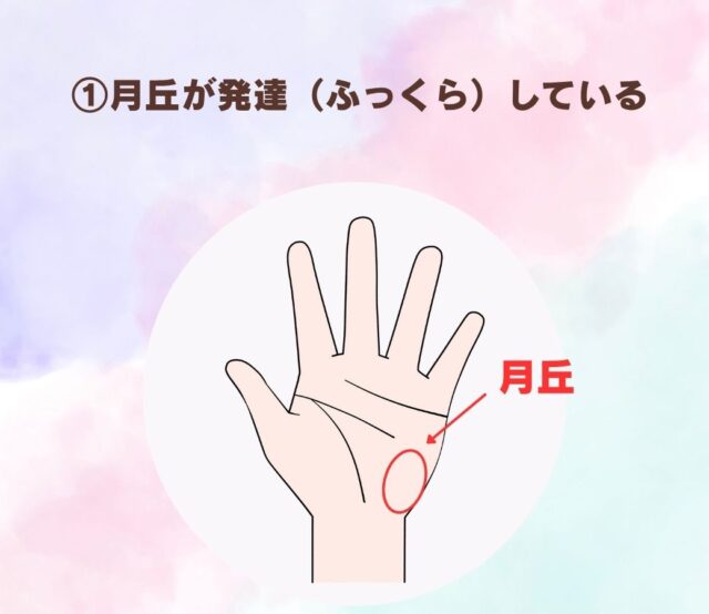 ■手のひらの丘で月丘(豊かな創造力、アイデア、ロマンが湧いて出るエネルギーの丘)が発達