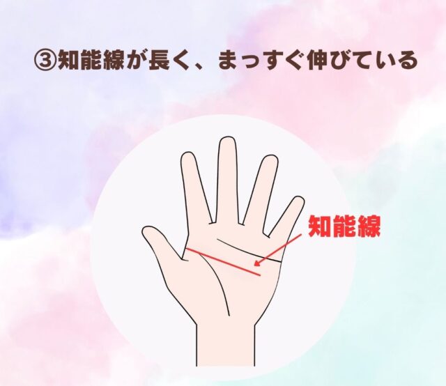 知能線が直線的にまっすぐ伸びて長い場合も、集中力や観察力が高く、芸術的才能を持つ型の一つとされます。